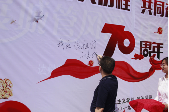 师生们依次走上台在表白墙上书写对伟大祖国的祝愿,用真诚的赤子之心向祖国母亲诉说着自己内心炽热的情感。