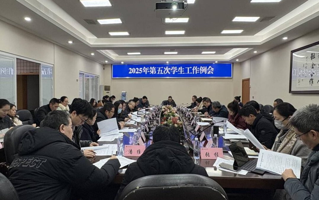 12月31日,学校在莲湖校区弘德楼三楼会议室召开2025年第5次学生工作例会。党委常委、副校长陈光平主持会议并讲话,相关职能部门负责人、各二级学院党委副书记及学生工作处科级以上干部参加会议。