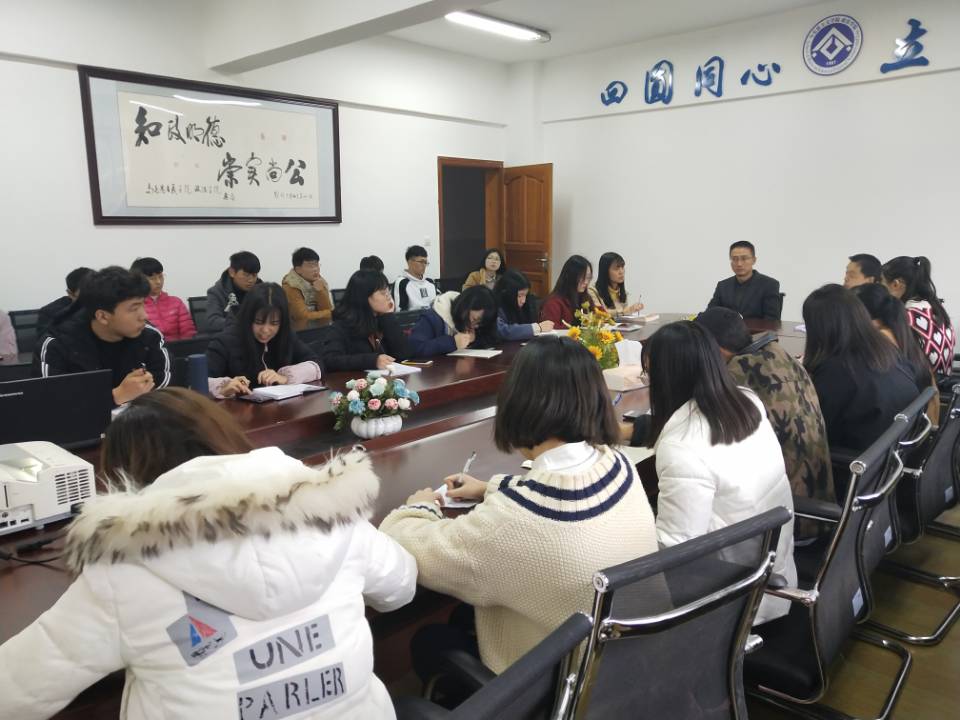 3月22日下午5点10分,我院在一教楼611会议室召开本科教学工作审核评估学生干部动员大会。党总支副书记吴辉兵、学工办主任唐幸福、团总支常务副书记吴正霞出席会议,团总支、学生会各部部长以及大一至大三修业班团支书和体育委员列席。本次会议由唐幸福老师主持。