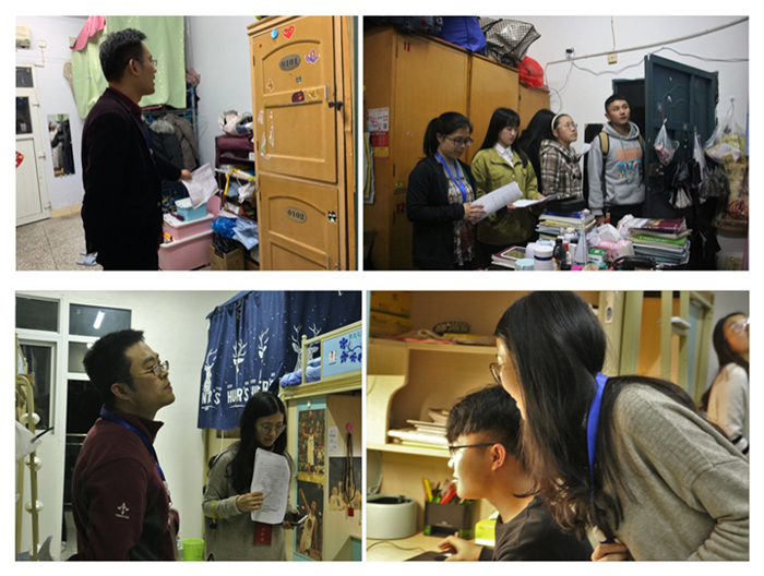 在检查过程中,文传学院各辅导员老师格外注意寝室内部卫生状况和同学们安全意识,对内务凌乱、安全意识不高的寝室提出批评并要求整改,对内务整洁、整体氛围较好的寝室做出表扬并鼓励继续保持。