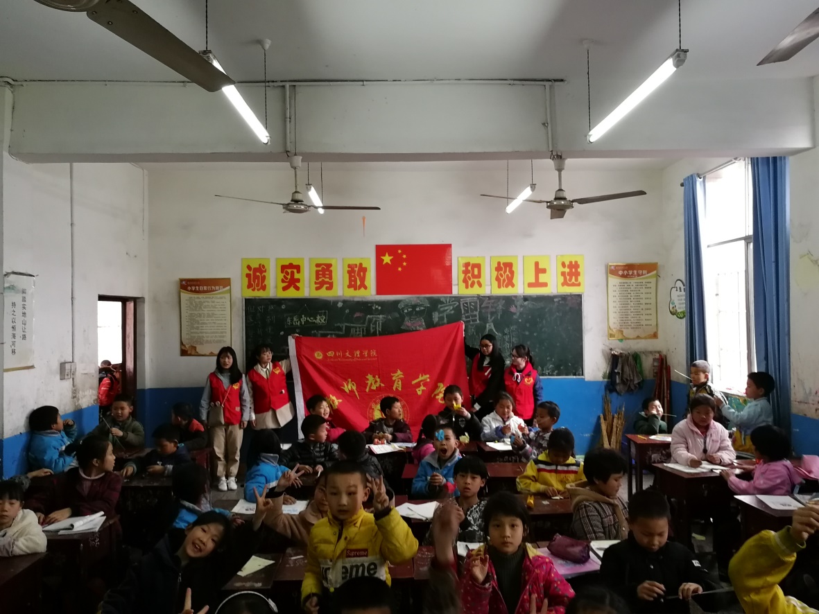 2019年4月3日14:00,教师教育学院团总支社会实践部相关负责人员及四名志愿者前往达州市通川区东岳镇中心校,成功开展了2018—2019—2学期第二次支教活动。本次支教的对象是东岳镇中心校三年级的学生,支教志愿者分为手工组和文化组,支教内容为手工、文化知识,培养孩子们的动手能力,给孩子们带去知识与欢乐。