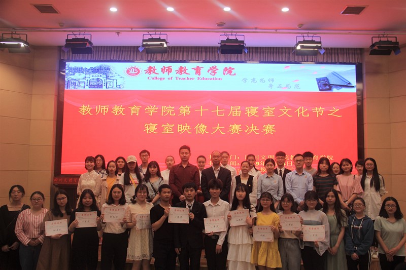 为丰富同学们的课余生活,增强宿舍成员间凝聚力,发挥同学们的创新精神,营造和谐、温馨的校园氛围。2019年4月23日19:00,教师教育学院在莲湖校区学术报告厅A厅开展了教师教育第十七届寝室文化节“寝室映像”视频展示决赛。教师教育学院党总支副书记王斌老师、心理学教研室主任廖明英老师、教育学教研室主任符果老师、韩耀阳老师以及童琳老师莅临本次大赛并担任评委。学院2017级、2018级部分同学观看了本次比赛。
